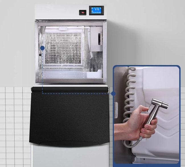 Thay vì trang bị màn hình điều khiển và các nút nhấn cơ, phiên bản này lại sử dụng màn hình cảm ứng LCD để điều chỉnh tình trạng hoạt động. Thông qua những nút lệnh trên màn hình, bạn có thể dễ dàng tăng/giảm độ dày của đá, thời gian làm đá,... Đặc biệt, bộ phận còn có khả năng nhắc nhở người dùng khi thiếu nước. Theo đó, mà bạn không lo gặp vấn đề về máy hoạt động kém hoạt suất, không cho ra thành phẩm như mong đợi,...