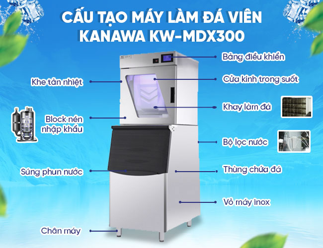 Đặc điểm nổi bật của máy làm đá viên 300kg có kính