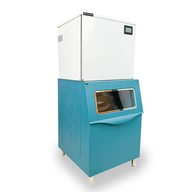 Thùng chứa đá 420 lít, có kính nhìn xuyên thấu giúp người dùng quan sát đá viên bên trong. Trọng lượng 150kg vừa đủ chắc chắn khi vận hành, vừa thuận tiện di chuyển khi cần thay đổi vị trí, mang đến giải pháp tiết kiệm không gian hiệu quả cho các mô hình kinh doanh nhỏ và vừa.