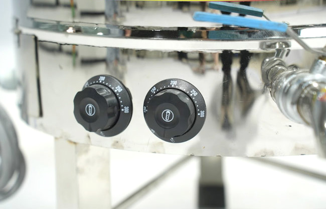 Đi kèm hệ thống cấp nước và dầu là hệ thống van xả tương ứng. Van xả nước được đặt ngang với đáy nồi giúp lấy thành phẩm bên trong và hỗ trợ vệ sinh cực tốt.