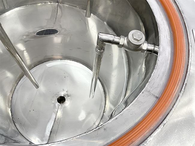- Ống xả hơi và sục khí vào phần bỗng rượu để đun sôi phần bỗng rượu bằng hơi nhiệt và sục cho bỗng trộn đều, đảm bảo chất lượng rượu đồng đều, tránh khê ở đáy nồi.